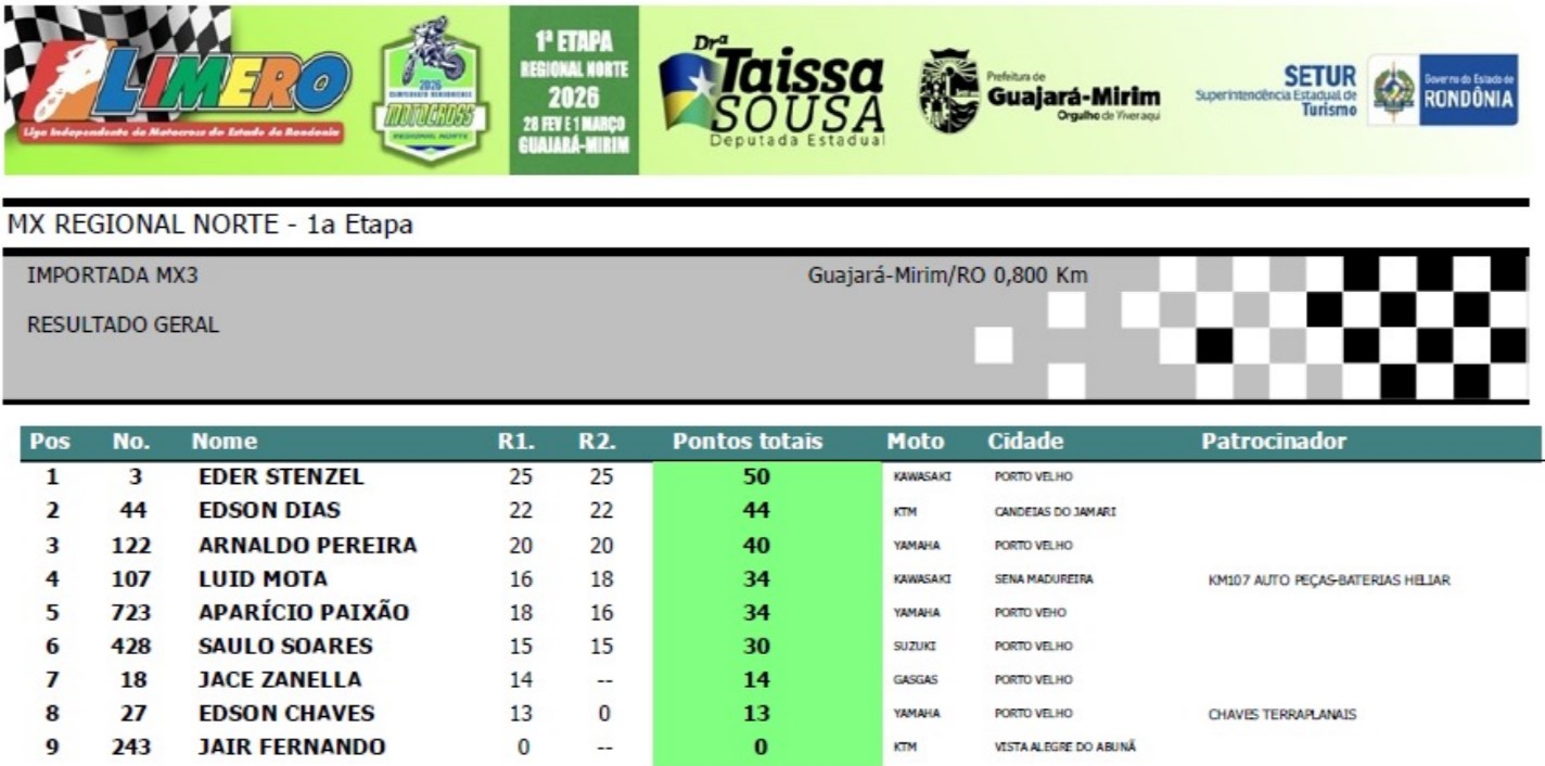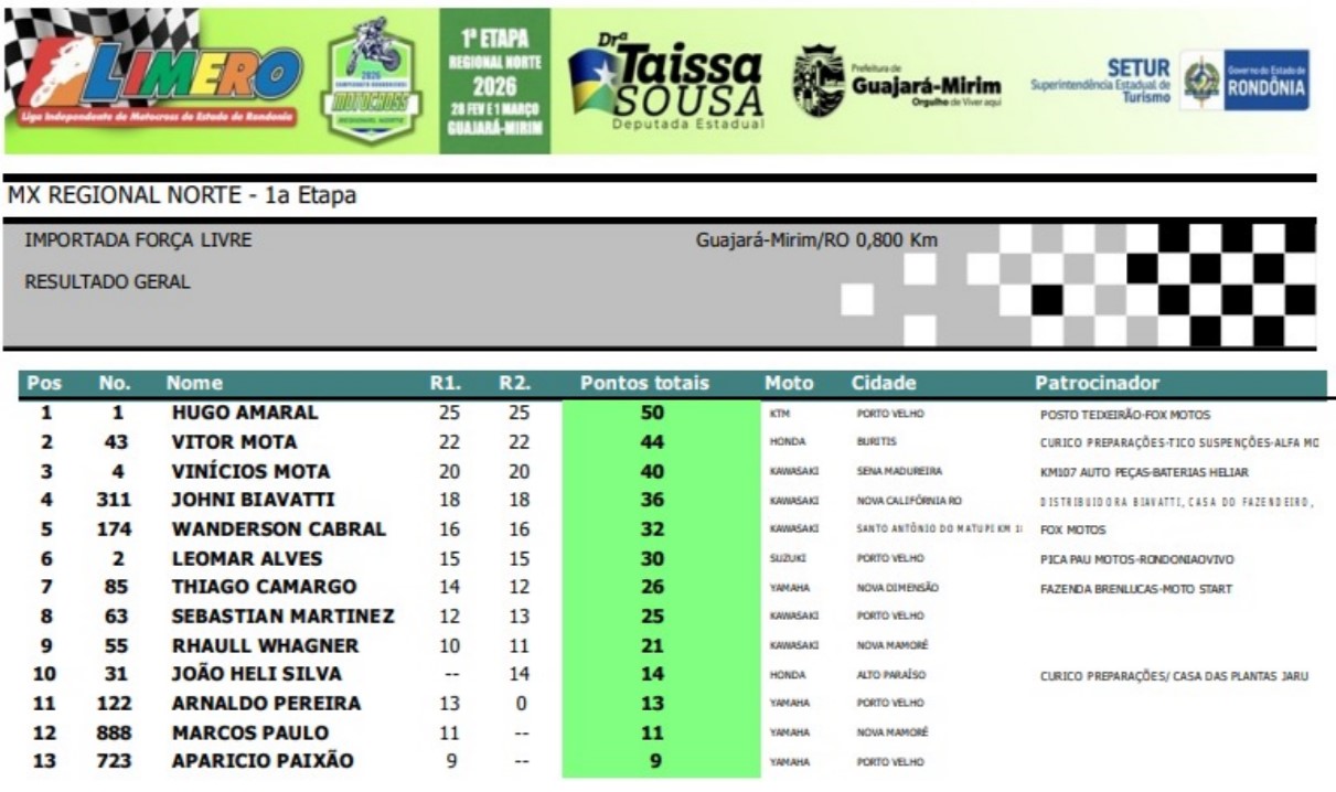 O município de Guajará-Mirim foi palco de abertura da temporada 2026 das provas de Motocross da LIMERO neste final de semana com a realização da 1ª etapa do Regional Norte.