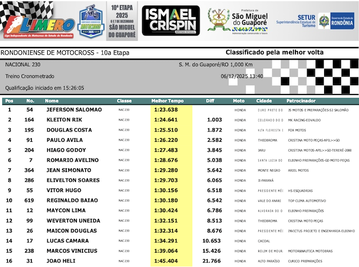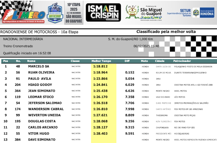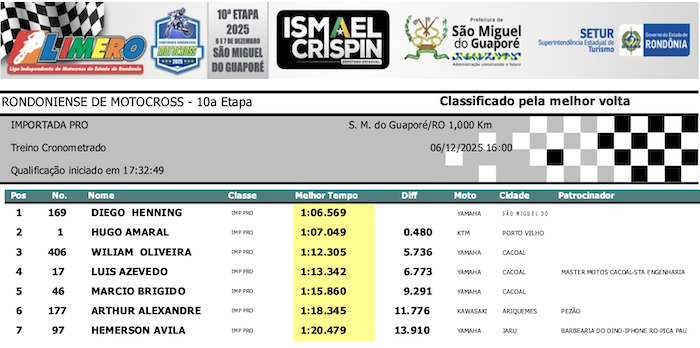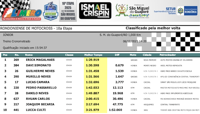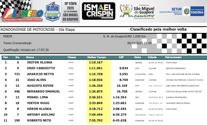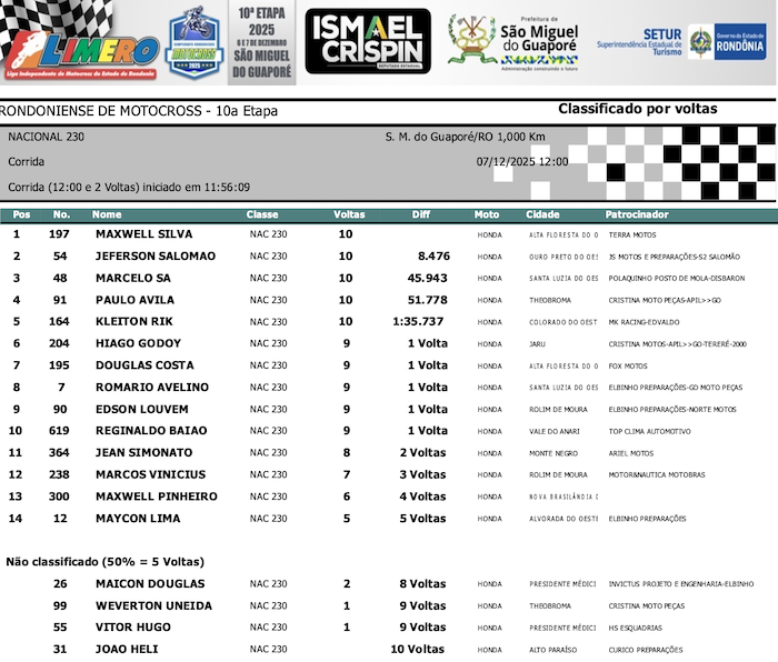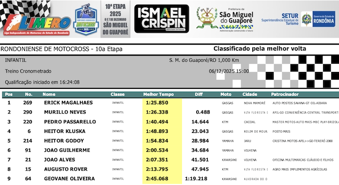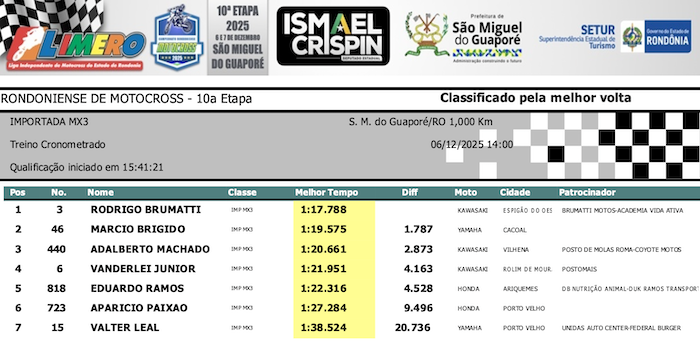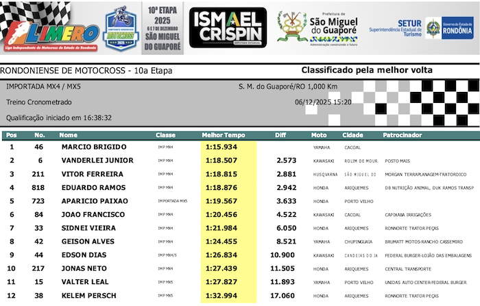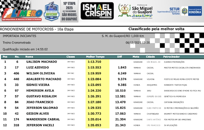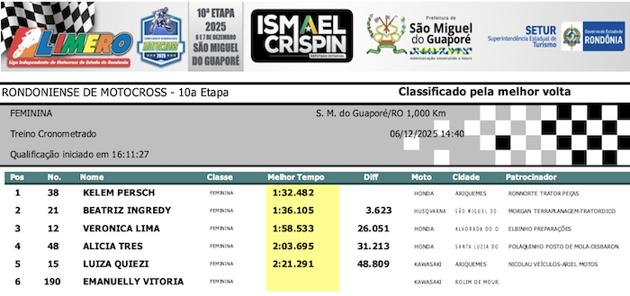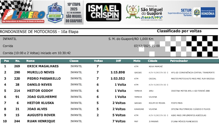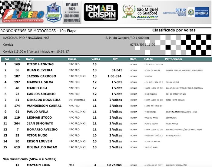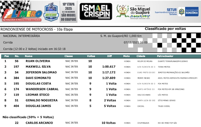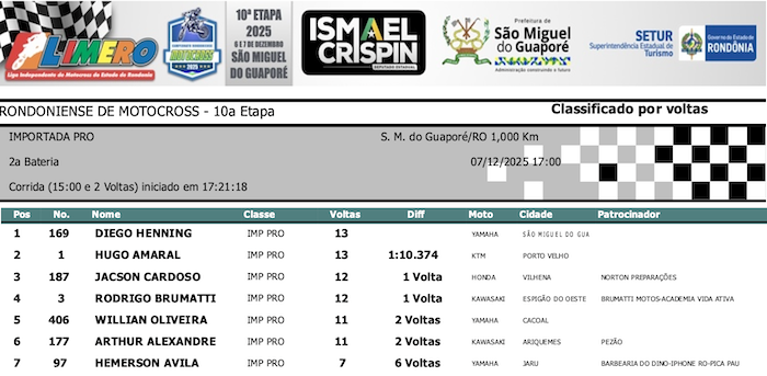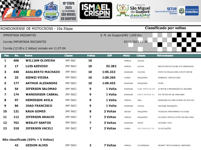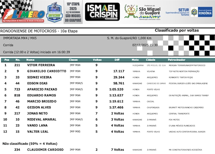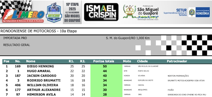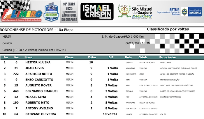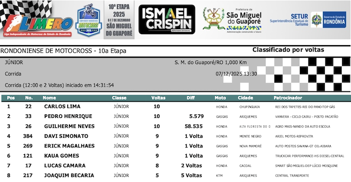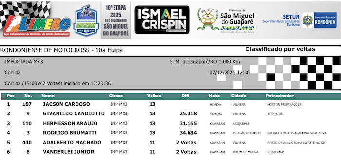 RESULTADOS: Rondoniense de Motocross – 10ª Etapa – São Miguel do Guaporé