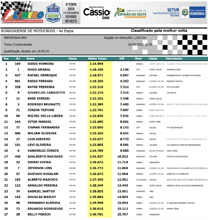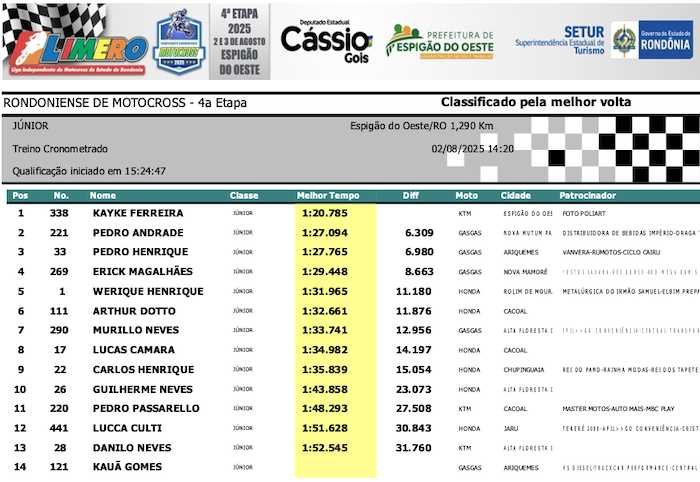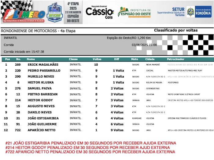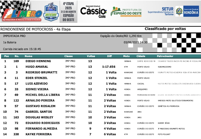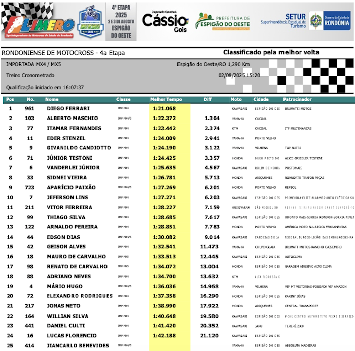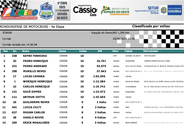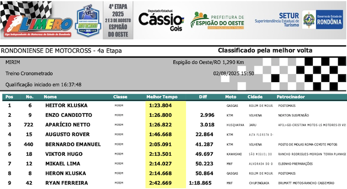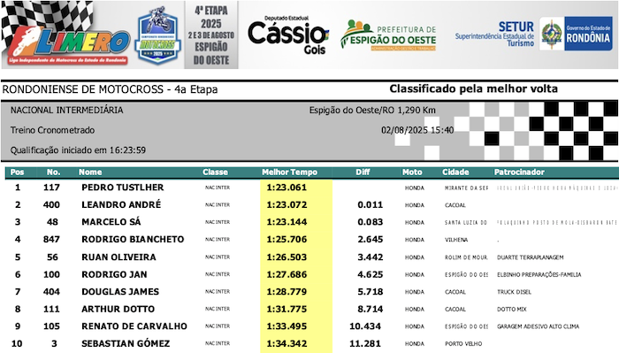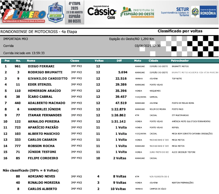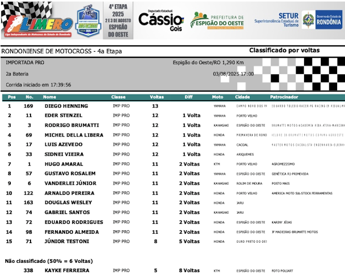 RESULTADOS: Rondoniense de Motocross – 4ª Etapa – Espigão do Oeste